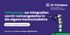 Der KI-Campus vergibt zu diesem Zweck bis zu 15 Fellowships an Hochschullehrende unter Nutzung von offen lizenzierten KI-Campus-Lernangeboten.